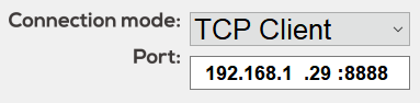 (服務(wù)器)模式,根據(jù)您設(shè)置的通訊盒 IP 及端口號(hào),修改下圖的目標(biāo) IP 及端口,如下圖所示。通訊盒做 TCP 服務(wù)端時(shí),出廠默認(rèn) IP 為 192.168.1.29,監(jiān)聽端口為8888。