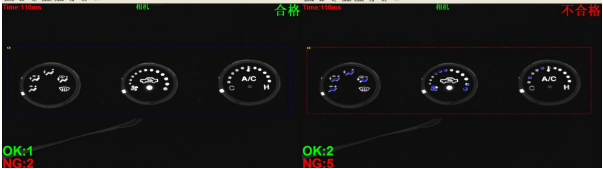 汽車儀表盤是反映車輛各系統(tǒng)工作狀況的裝置,由于上面集成了各種指示燈和儀表,需要在生產(chǎn)過程中進行大量復雜的檢測工作,而且生產(chǎn)工位對節(jié)拍要求較高,要求檢測速度一定要快。另外,檢測項復雜,包含了字符識別、顏色識別、圖案匹配等。以前使用人工檢測,檢測效率低,儀表盤的誤檢率和漏檢率居高不下。顯揚科技3D視覺能夠幫助汽車儀表盤制造廠商提供性能強,算法完備,檢測速度快的視覺系統(tǒng)。