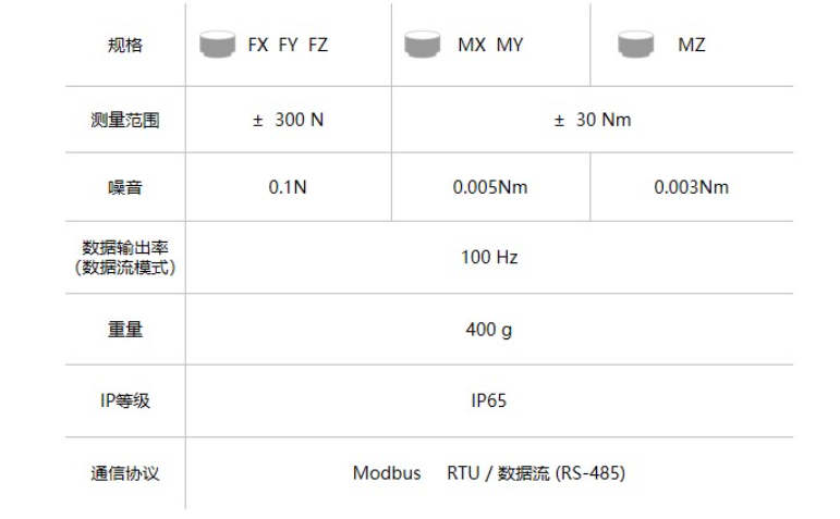 Robotiq FT 300-S力扭矩傳感器的參數(shù):
