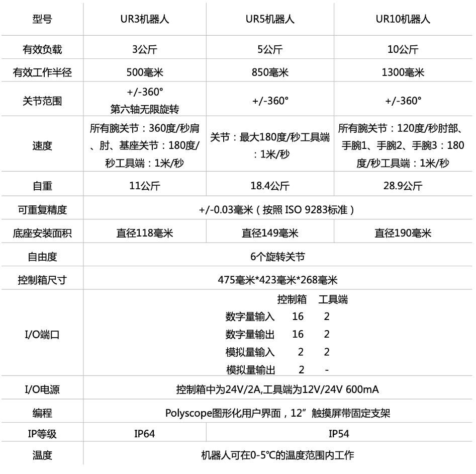 隨著UR3新型機器人的問世,新款緊湊型臺式機器人自重僅為24.3磅,但是有效負載卻高達6.6磅,所有腕關節均可360度旋轉,而末端關節可作無限旋轉。這些獨特的功能使得UR3成為現今市場上靈活輕便、并且可與工人一起肩并肩工作的臺式機器人。“