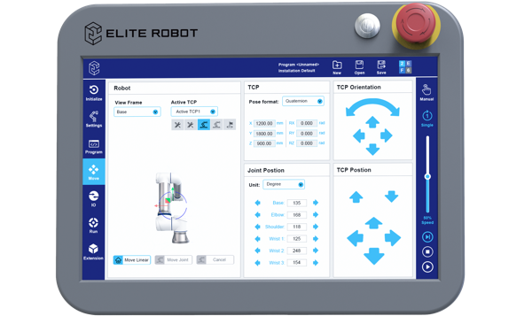 艾利特CS系列協(xié)作機器人采用新型的輕量寬屏示教器,用戶界面經過重新設計,操作直觀,支持觸屏控制。基于對用戶使用習慣的理解,艾利特優(yōu)化了編程流程,并簡化了編程步驟,只需在示教器上點擊幾下,便可完成編程,從而減輕用戶學習負擔,上手更快速,幫助用戶和集成商加快項目開發(fā)周期。用戶能充分體驗到CS系列簡約現代的外觀,以及工具欄中醒目而直觀的圖標,導航更方便,使用更流暢。
