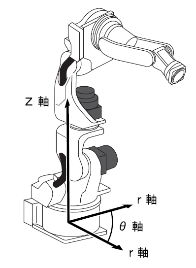 在圓柱坐標(biāo)系,艾利特EC63機器人以本體Z軸為中?旋轉(zhuǎn)運動,或與Z軸成直?平?運動。圓柱坐標(biāo)系的θ軸、R軸、Z軸?向如下圖所示。
