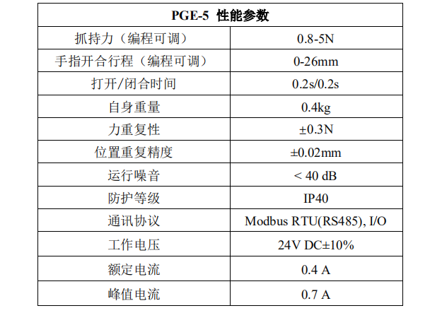 PGE-5 夾爪的具體參數(shù)在下表中詳細列出: