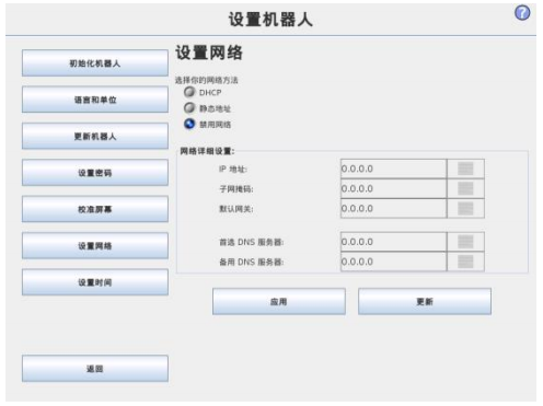 • 設置網(wǎng)絡打開用于設置機器人控制箱以太網(wǎng)的界面 。