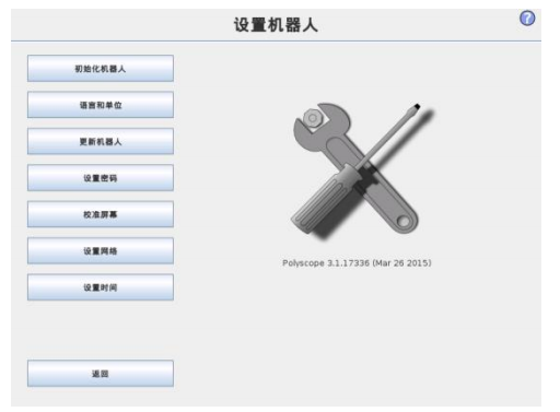 PolyScope 中使用的語言和單位可以在該屏幕設定。PolyScope 上不同屏幕顯示的文本都將以選定的語言顯示,內嵌的幫助文件也將以選定的語言顯示。勾選 “英文編程”,以英文顯示機器人程序內的命令名稱。PolyScope 必須重新啟動,所做更改方可生效。