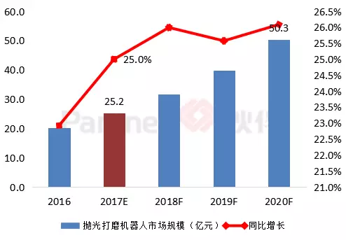 以上種種因素都促使打磨行業對自動化和機器人提出了新的需求。近幾年,我國拋光打磨機器人行業市場規模快速增長。機器人不僅可以提高工作效率和質量,避免了操作者的受傷,還可以完成很多手工無法完成的打磨和拋光工作,有效解決了人工打磨的局限性。