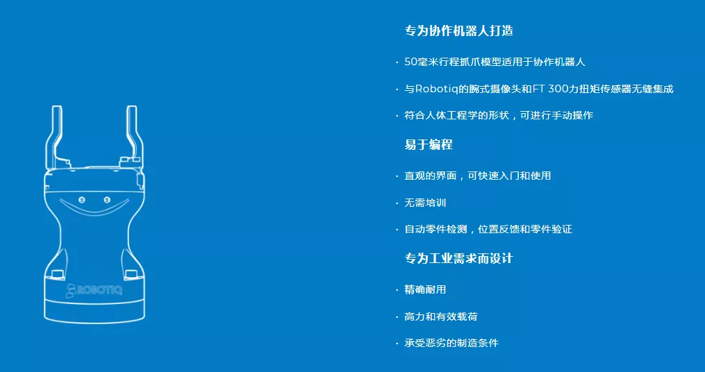 協作機器人的出現解決了這一難題,Robotiq 夾爪,即插即用,應用廣泛,與所有主要的工業機器人兼容。