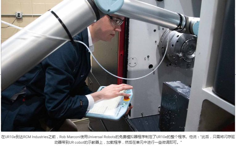 為了抓取機(jī)器維修應(yīng)用中的零件,RCM Industries 從在線UR +陳列室中選擇了PHD三爪Pneu-Connect抓手。抓手已通過UR +認(rèn)證,這意味著它可以即插即用,可以集成。“它已經(jīng)內(nèi)置了所有空氣閥,已完成所有布線,并且已經(jīng)完成了與機(jī)器人集成所需的任何編碼,” Marconi說。“我們只需將電線插入機(jī)器人,將軟件直接安裝到示教器,就可以開始使用了。”