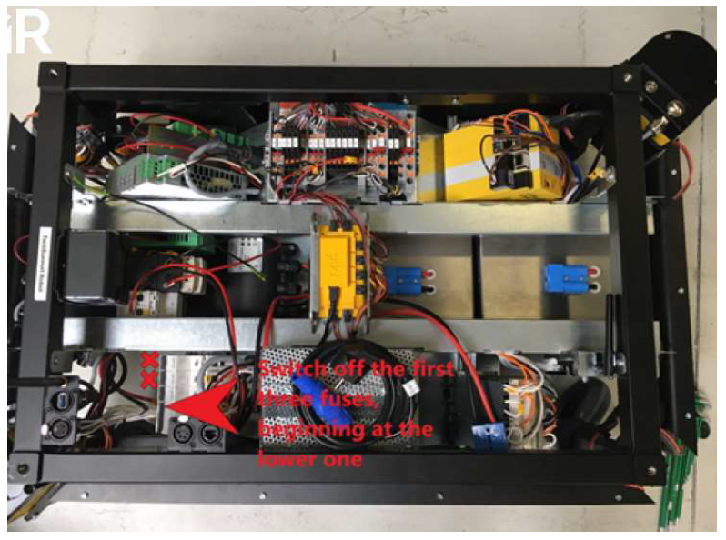 2. 關(guān)閉電池相關(guān)的保險絲。如圖,三個保險絲,從圖片最下面一個保險絲開始關(guān)閉。