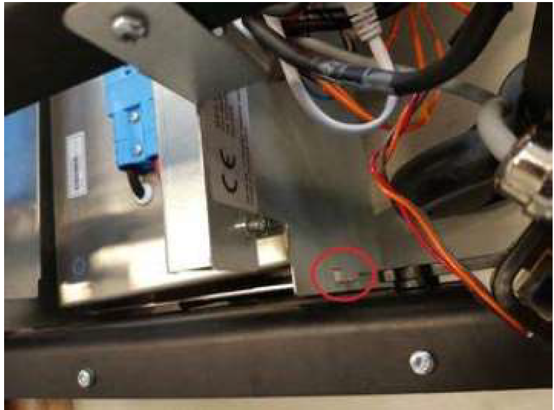 3.確保MiR機(jī)器人原裝電池已充滿電。然后斷開電池(移除藍(lán)色的接頭)。