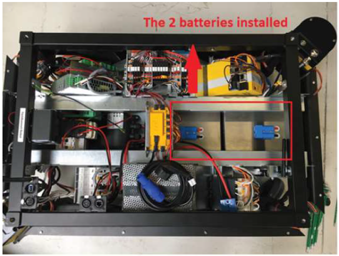3.將第二個電池裝入MiR機(jī)器人,并使用金屬條固定。