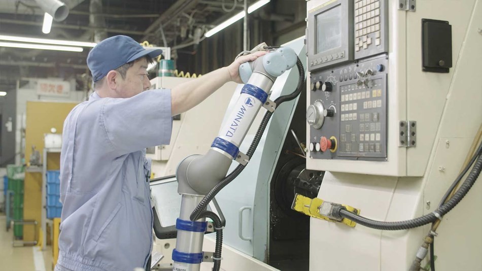 A公司反映,在過(guò)去,他們需要一個(gè)人負(fù)責(zé)一臺(tái)數(shù)控機(jī)床。但是自從引入了UR協(xié)作機(jī)器人之后,一個(gè)人可以負(fù)責(zé)多臺(tái)機(jī)器。