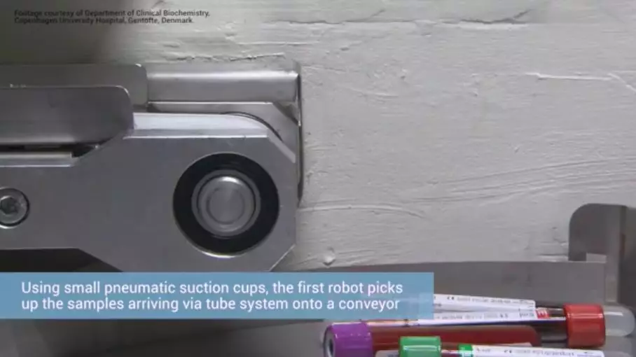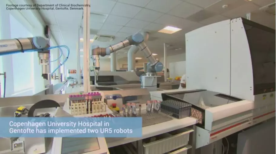 哥本哈根大學醫院采用兩臺UR5機器人,優化血液樣本的處理和分類。借助這兩臺優傲協作機器人,在送檢樣本增加20%的情況下,實驗室也能夠在1小時內交付90%以上。