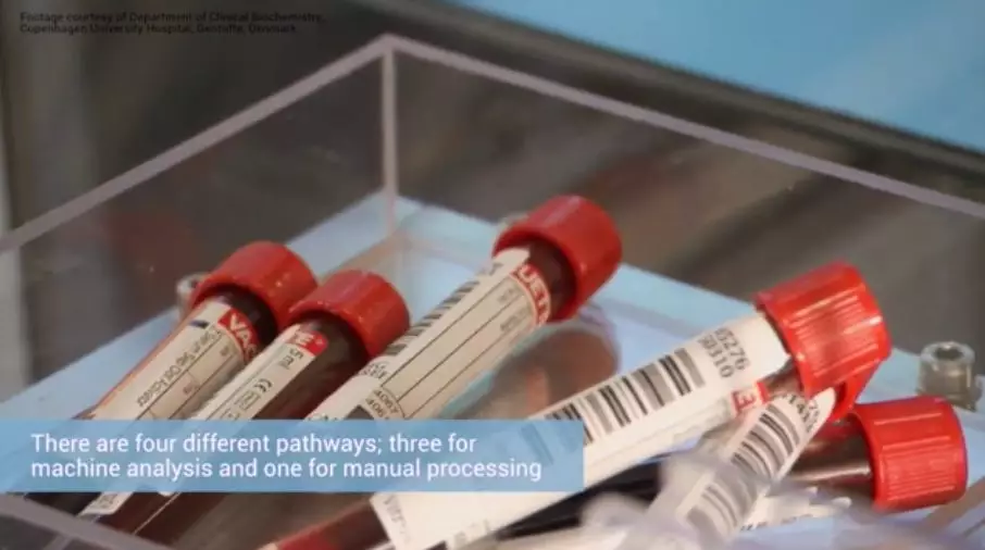 丹麥的哥本哈根大學根措夫特醫院想探索并了解協作式機器人如何實現在四種不同路徑下,進行血液樣本的人工分揀,以供進一步分析,同時又能保證自動化的經濟高效性。機器人應用必須放置在實驗室內的有限空間中,而這對于笨重的大型自動化裝載機來說則是無法實現的。醫院實驗室希望技術人員能夠與機器人進行互動,在血液處理過程中,如果需要人為干預,他們能夠輕松介入。在送檢樣本增加了20%的情況下,管理層仍努力堅持完成實驗室的既定目標,在未增加其他工作人員的情況下,一小時內完成 90% 的血液樣本分析。