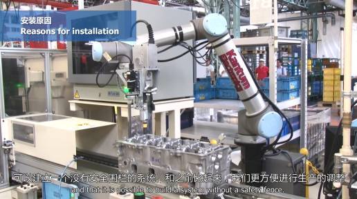 經過嚴謹的對比和評估后,日產汽車選用了UR10協作機器人,替代人力把總重約6公斤的進氣管搬運到工人面前,再由工人直接進行組裝。這一人機協作模式保證了穩定的生產節拍,使得生產效率提到提高。此外,還大大減少了工人的勞動負荷。