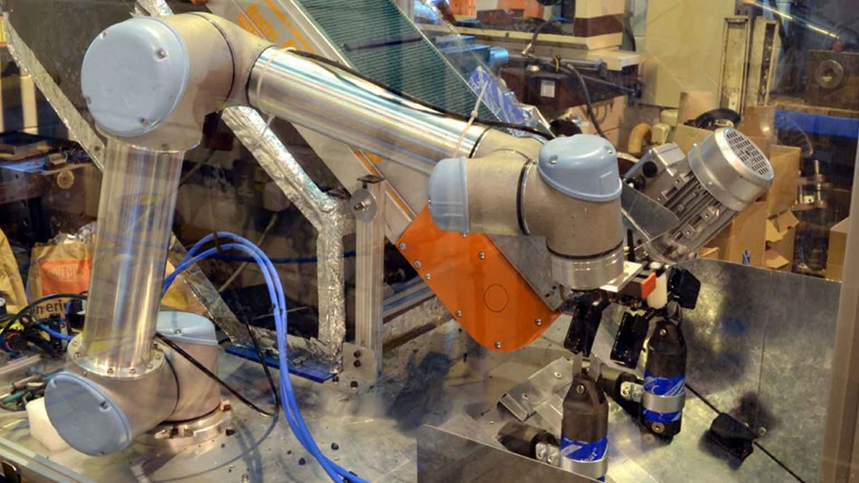 編程后的優傲機器人能將毛邊部件傳輸給裁切器,發出信號指示剪切時間。該機器人也可用于裝卸電腦數控機床。有了UR機器人之后,用它來代替手工作業,而員工可以監管三臺機器,也可以花更多的時間在更有價值的工作上。
