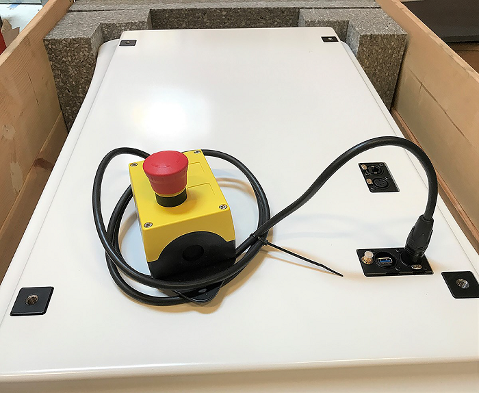 6. 將急停盒安裝并連接在機(jī)器人外蓋頂部。