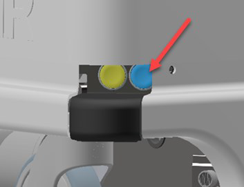 8. 按下角落處的藍(lán)色電源按鈕,以啟動機(jī)器人。機(jī)器人短暫亮起黃色運(yùn)行燈,隨后進(jìn)入急停模式,紅色燈常亮。