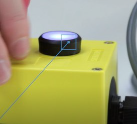 9. 在其亮起后,按下急停上的重置按鈕。機(jī)器人燈現(xiàn)已切換為黃色燈常亮。這表示機(jī)器人已暫停并且已準(zhǔn)備好運(yùn)行。