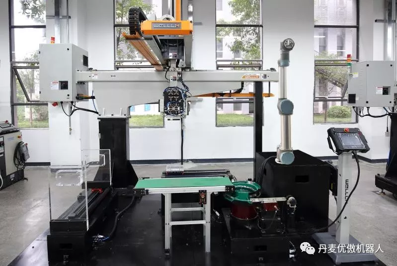技術描述:UR機器人可配合其他自動化設備,協同完成整個工序。振動排序裝置完成排序工作后,UR機器人取出放入二次定位工裝,由自動化設備將物料從從二次定位工裝上抓取進行嵌入、取出操作,實現工序自動化。當然,從二次定位工裝上抓取進行后續操作也可采用UR機器人實現。