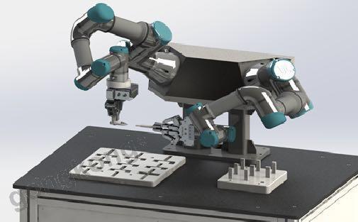 工作流程描述: UR雙臂,其中一個手臂安裝服務器CPU,同時另外一個手臂安裝風扇。完成后,雙臂協同裝配內存條。UR雙臂機器人的兩個手臂,既可以單獨運行,也可以協同工作。