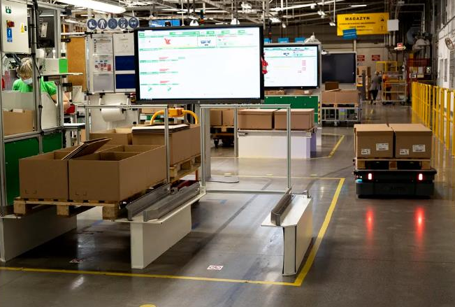 這背后還有一個王牌統帥——MiR Fleet車隊調度軟件,這款極易編程與使用的軟件可從一個工作站集中控制,實現單次管理多臺移動機器人的目標。在生產車間,MiR Fleet能根據生產需求,向三臺MiR200機器人派發工作指令,管理移動機器人的工作優先順序,并指定最合適的移動機器人進行操作。由于工廠生產布局多為動態,人員、設備和貨盤等“障礙物”會時常出現在開放通道,甚至在交叉口造成“擁堵”,控制MiR機器人在多路徑交互點上安全移動就變得尤為重要,而MiR Fleet就起到這樣一位交通指揮官的角色。它也是一位知冷暖的統帥,監控MiR機器人日常工作狀態,如果發現機器人電量不足,會下達指令讓其自行前往充電站實行充電。另外,MiR Fleet軟件還與工廠另一套系統軟件——基于PC的數據庫系統,協同管理產線物料、任務需求信息。